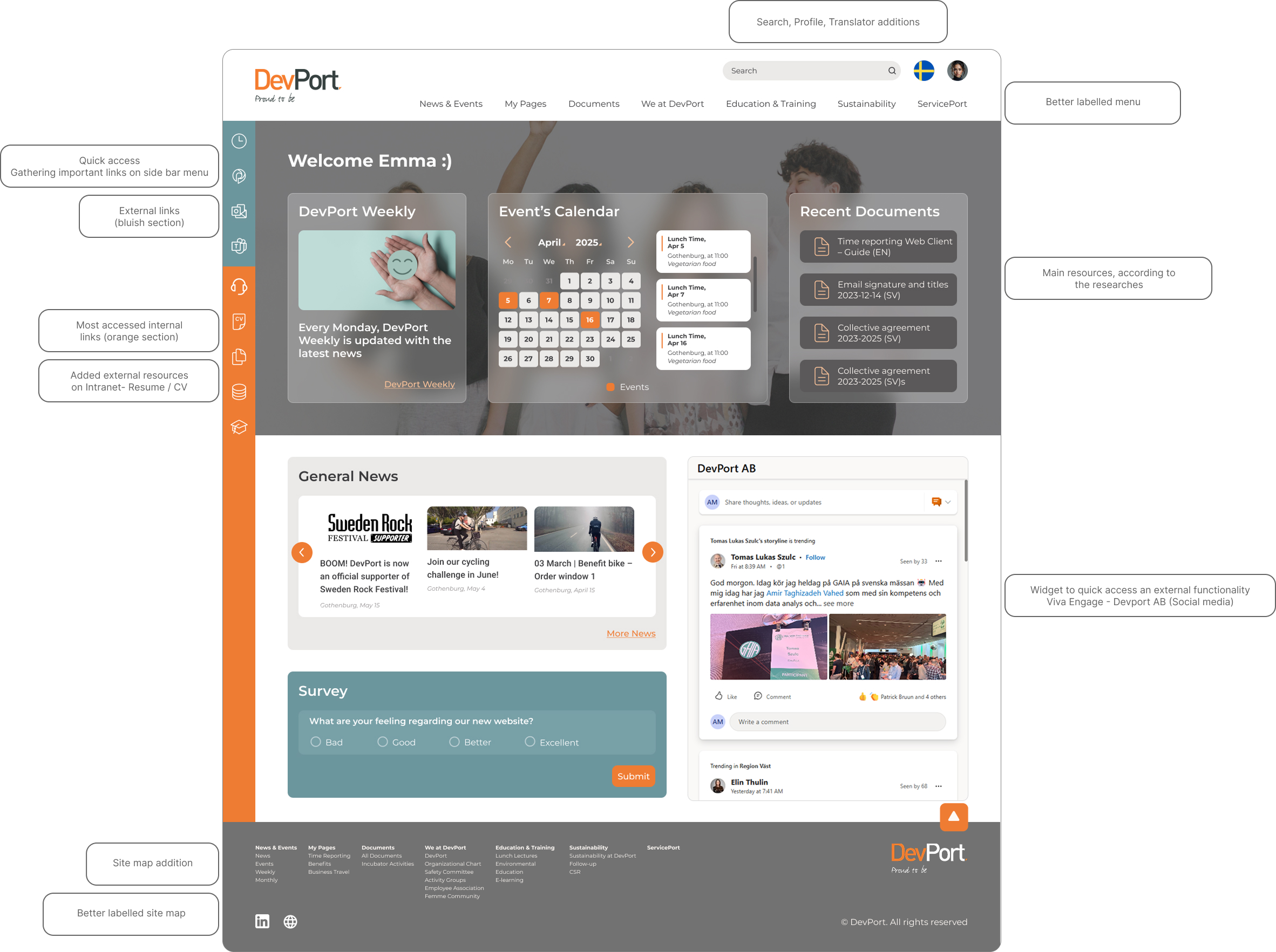 So, key features like Documents, CV, and Search were top priority. Others like Calendar, News, and E-Learning came after.